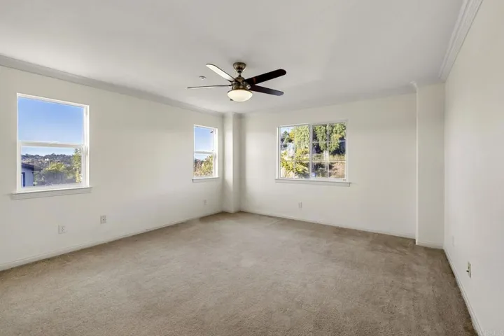 Welcome to your dream lifestyle in the prestigious Summit at Hidden Meadows—a gated enclave where every day feels like a retreat. Set on a quiet street with breathtaking mountain and golf course panoramas, this expansive 5-bedroom plus office, 4.5-bath home offers nearly 4,000 square feet of thoughtfully designed living space perfect for active families and entertainers alike. Step inside and experience soaring 18-foot ceilings, rich wood floors, and an abundance of natural light that creates a warm, inviting atmosphere. The chef’s kitchen is the heart of the home, boasting an oversized prep island, sleek granite counters, and endless cabinetry—ideal for gatherings and everyday living. Host elegant dinners in the formal dining room or cozy up by one of three fireplaces after a day of adventure. Upstairs, your private master retreat features dual walk-in closets, spa-inspired bath, and a balcony with stunning sunsets over Boulder Oaks Golf Course and the Escondido Valley. Generously sized secondary bedrooms offer flexibility for family, guests, or hobbies, including a guest suite and dedicated office on the main level. Enjoy sunny SoCal days in your low-maintenance, kid- and pet-friendly yard with lush grass, shaded patio, and plenty of space to relax or play. Owned solar keeps energy costs low, while the 3-car garage provides ample storage for all your needs. Life at Hidden Meadows means more than just a beautiful home: enjoy a vibrant community with a sparkling pool, tennis courts, clubhouse, and year-round events—plus two local delis, golf, live music, and trivia nights just steps from your door. Discover comfort, connection, and endless possibilities in one of North County’s most sought-after neighborhoods.