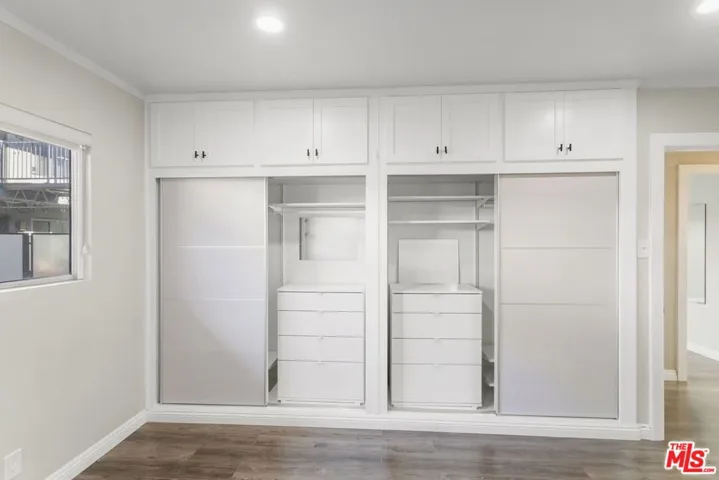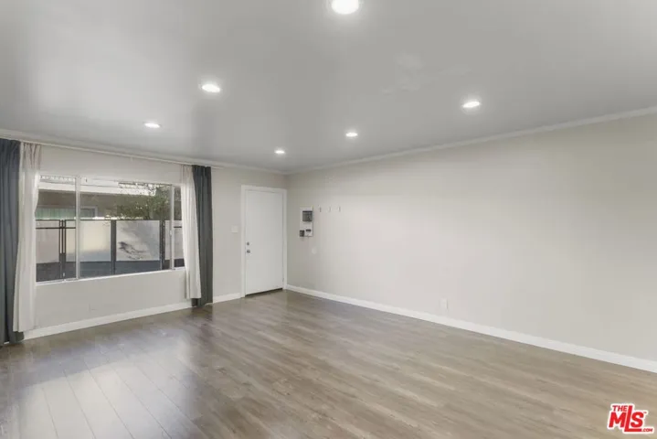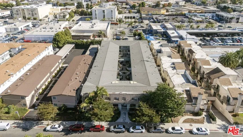 Discover this 2 bed 1 bath ground floor condo tucked inside a classic mid century courtyard community. A private enclosed patio sets the tone, an ideal spot to relax or enjoy a quiet moment outdoors. Step inside to a bright open living room with recessed lighting, built in shelving, and a large window that fills the space with natural light. The remodeled kitchen blends clean modern finishes with mid century flair, featuring white cabinets, stone countertops, newer appliances, and a sputnik style light above the dining area. The updated bathroom feels fresh and elegant with a stone top vanity, gold toned hardware, a black arched mirror, and a tiled shower/tub. Both bedrooms offer a minimalist calm aesthetic anchored by a custom floor to ceiling wardrobe system that maximizes storage. Enjoy in unit laundry, an extra storage closet, a private shed, and one secured subterranean parking space with access from Lamos Street. The complex offers secured entry, landscaped courtyards, and classic mid century design elements throughout. Located near Inglewood’s growing sports (Sofi and Intuit Dome) and entertainment district (Kia Forum), shopping, dining, public transportation, and convenient 405 access to the Westside and Beach Cities.