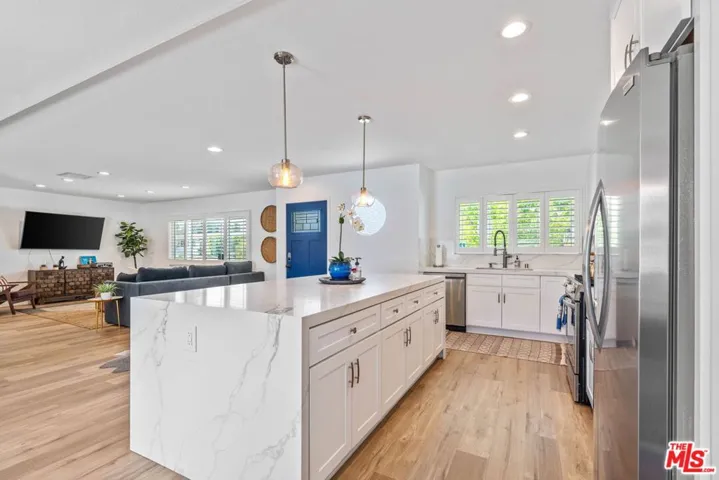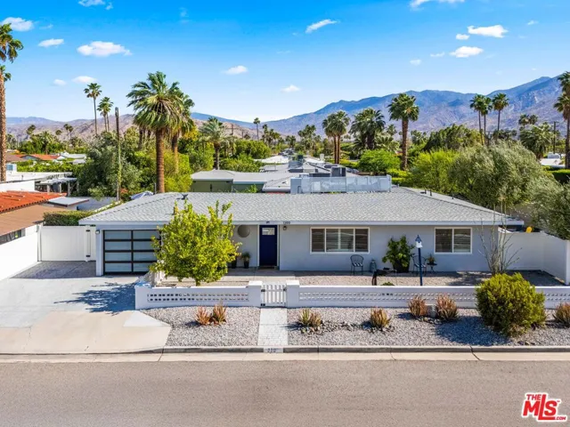 Beautifully Remodeled Mid-Century Oasis. Tucked in the heart of Movie Colony East, this thoughtfully upgraded and beautifully furnished 3-bedroom, 2-bath retreat is move-in ready for Summer. Recently renovated/updated with new fixtures, roof, water-proof floors, electrical, plumbing, pool equipment, HVAC, double-pane windows, and smart home systems including a Nest thermostat and remote-controlled lighting. Manicured fruit trees and zen-style hardscaping welcome you to the bright open floor plan equipped with a contemporary designer finishes, blue glass stone fireplace, wide-plank floors and recessed lighting throughout. The upscale chic kitchen features an oversized island that anchors the space with waterfall-edge quartz counters, stainless steel appliances, and custom cabinets with ample storage space. The primary en-suite features a remodeled bathroom, tranquil views of the pool and mountains, and easy access to the backyard through the sliding glass door. The guest bedrooms are airy and bright with one having direct access to the backyard. The oversized one-car garage has a separate side-yard entrance and a separated laundry room with updated washer/dryer and sink. The oasis style backyard features scenic mountain views and is equipped with a resurfaced pool and spa, updated pool equipment, BBQ, multiple seating and dining areas with fire-pits and umbrellas – PERFECT FOR ENTERTAINING! Minutes from the vibrant downtown Palm Springs shopping, dining and entertainment. This is the Palm Springs lifestyle at its best.
