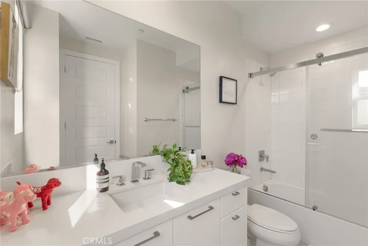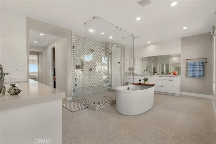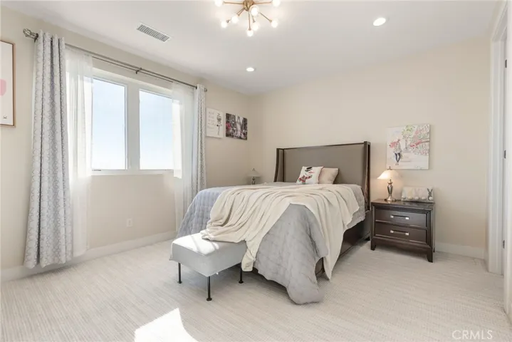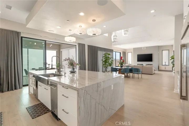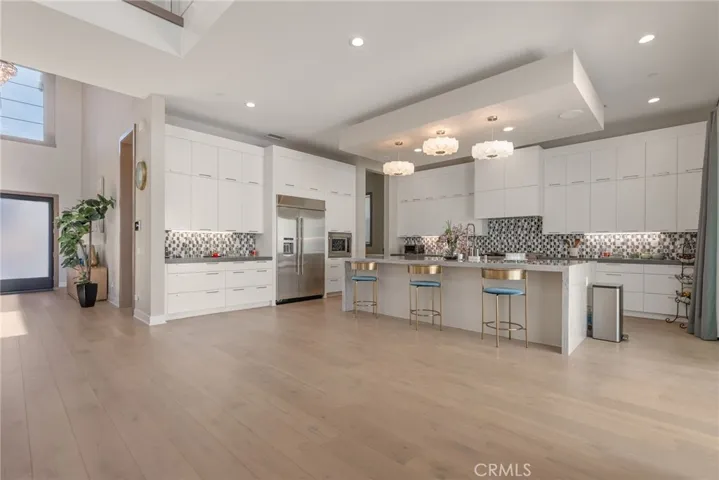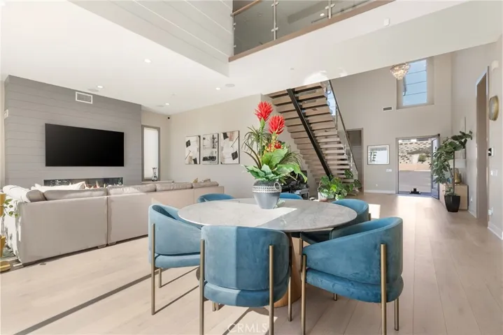 An enclosed California room expands the living footprint even further, featuring a custom-designed bar area tailored specifically for the space—perfect for entertaining and year-round enjoyment.Every detail has been meticulously upgraded: premium flooring, a designer kitchen, and spa-quality bathrooms. The home is fully prewired with built-in speakers and connected to a Sonos system for whole-home audio. Custom Shade Store blinds and curtains, including automated window treatments, pair beautifully with custom chandeliers and refined moldings throughout. Organization is elevated with fully customized cabinetry by California Closets and Inspired Closets, extending to the upstairs media room. Located on a wide, quiet street, the property showcases gorgeous panoramic city and canyon views, offering a stunning backdrop for both everyday living and entertaining. A rare opportunity to own a highly upgraded, turnkey home in one of the area’s most sought-after gated communities.
