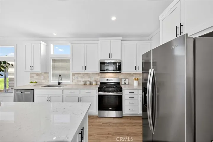 The chef-ready kitchen features a quartz island, stainless steel appliances, and a walk-in pantry. The generous primary suite includes a walk-in closet, dual vanities, and a walk-in shower. Two additional guest bedrooms and a utility room with side-by-side laundry hookups provide extra comfort and convenience.