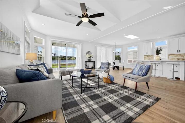 Experience lakeside living at its finest in the serene 55+ community of Lake Los Serranos-where every day feels like a vacation. Enjoy peaceful mornings on the oversized porch overlooking the water. This bright and open floor plan offers an abundance of natural light from skylights and large windows throughout the home.