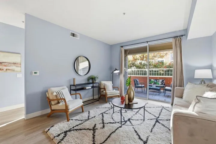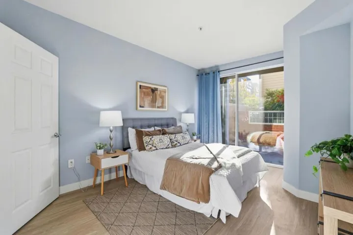 Discover the best of urban living in this beautiful condo in the heart of downtown San Jose. Ideally located in the community, this unit shares no common walls with neighboring units. Located adjacent to stairwell & hallway, this unit only adjoins neighbors via ceiling and floor. With spacious open floor plan, this home features updated kitchen with brand-new stainless steel appliances. Newly installed LVP flooring and baseboards build a beautiful foundation. Enjoy the convenience of an in-unit stackable washer & dryer, central heating & A/C, and a walk in closet. Step out onto your private patio, ideal for relaxing or entertaining guests. Additional storage included. Ryland Mews offers a secure, amenity-packed community with a large pool, hot tub, fitness center, community lounge, green spaces, BBQ area, EV charging stations, and guest parking. Located just minutes from San Jose Marketplace (Coleman Shops), San Pedro Square Market and Japantown, with easy access to restaurants, shopping, VTA Light Rail, and major commuter routes. Don’t miss out on this amazing opportunity schedule a tour today!