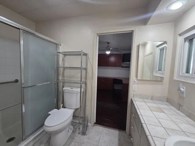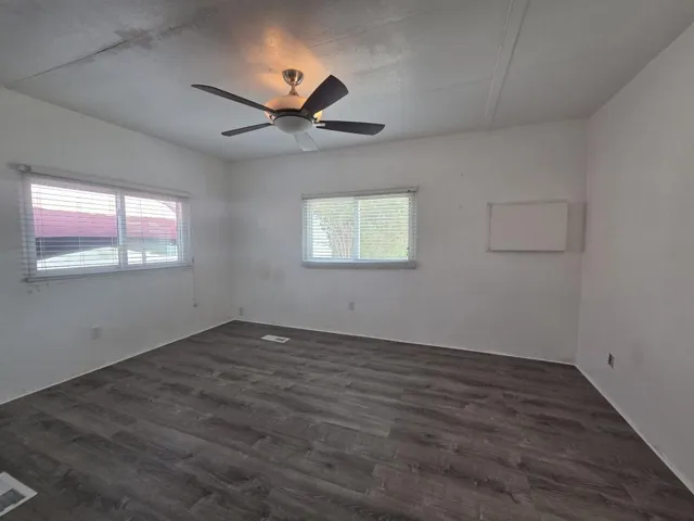 PRICE REDUCED! Located in the Caliente Sands 55+ community, 24 Mesa View, a 1976 Skyline Homette 1440 sq. ft., two bedroom / 1 3/4 bath mobile home, has been significantly improved and updated. Entry to this lovely home is via an enclosed foyer, which opens to a stunning greatroom with a wet bar; this large space is accentuated with a beautiful tile flooring and a dramatic paneled wall. The kitchen is a chef’s delight, equipped with bold lighting, newer stainless steel appliances (including a Viking 5-burner cooktop and Maytag double-oven) and granite countertops. Opposite the dining area is the laundry room with full-size LG W/D on matching pedestals. The guest bedroom, currently configured as an office with a large built-in desk, has a 3/4 ensuite bath between the bedroom and the laundry. The primary bedroom has a swamp cooler, new laminate flooring, and a mirrored reach-in closet. The ensuite master bath is a wonder, outfitted with a two-person, jetted tub with TV and an adjacent large ‘spa-quality’ shower. Accessed via French doors in the dining area is a large covered and screened deck with counter and sink, and steps lead down to a private sitting area with BBQ and gazebo for shade. A privacy wall on the home’s carport side has been erected to provide additional shaded outdoor space and privacy. The house has double-pane windows throughout, central AC/heat, an upgraded electrical panel, and a tankless water heater. Approval by park management is required for purchase. Monthly space rent for the new owner will be $681.71, an amount which should be confirmed by any prospective buyer.