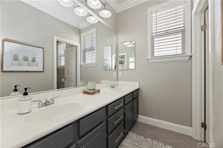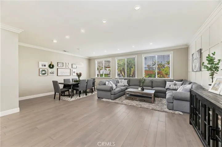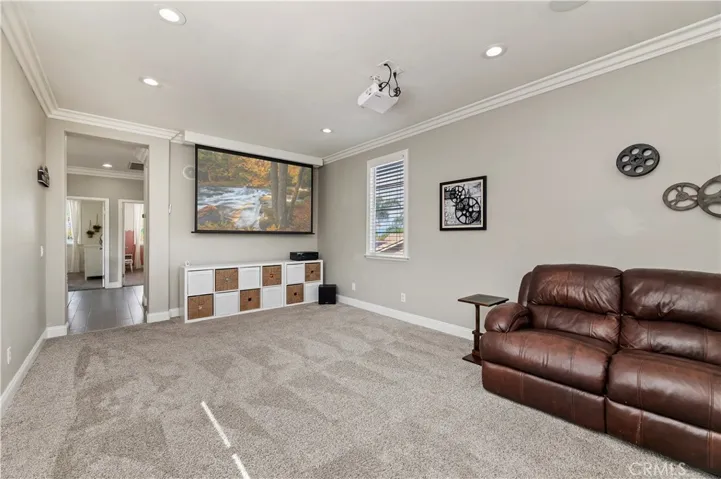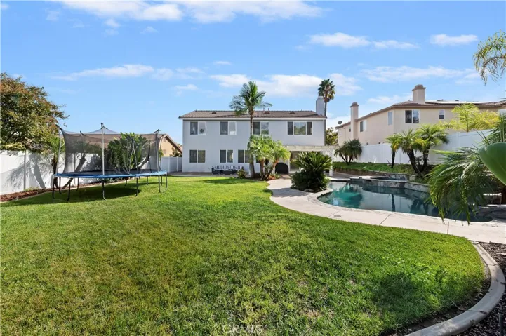 Nestled in the scenic green foothills of Corona, this stunning turnkey home blends modern upgrades with timeless comfort. The freshly painted exterior and manicured landscaping create an inviting first impression, leading into an elegant interior filled with natural light and refined design. Inside, soaring ceilings, new engineered hardwood floors, and a recently refreshed banister set the tone for the open and spacious layout. The living and dining areas flow seamlessly into the family room and a beautifully renovated kitchen featuring crisp white cabinetry, a large center island with quartz countertops, subway tile backsplash, and new KitchenAid appliances—complemented by a premium Thermador stove. Two large bedrooms are conveniently located on the main floor, one offering its own private entrance—perfect for guests, extended family, or a home office. Upstairs, the primary suite serves as a peaceful retreat with a cozy fireplace, sitting area, and a spa-like bathroom. Each of the home’s three bathrooms has been updated with new toilets, while all bedrooms feature new carpet for a soft, fresh feel. There is also a large bonus room upstairs that currently being used as a theater room. Additional upgrades include a new dual-zone HVAC system, a tankless water heater, and new baseboards throughout. Step outside to your private resort-style backyard, where a sparkling Pebble Tec pool and spa create the perfect space for entertaining or relaxing. The pool area has been enhanced with new equipment, updated lighting, and a freshly painted slide, all surrounded by lush tropical landscaping and newly installed vinyl fencing for privacy. A large attic provides generous storage, and the home’s prime location offers easy access to shopping, dining, supermarkets, and top-rated schools. Combining thoughtful upgrades, modern finishes, and an unbeatable setting, this exceptional property captures the best of Southern California living.