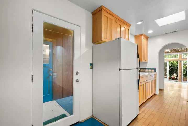 Welcome to this charming 2 bed, 1.5 bath home set in the vibrant city of Santa Cruz. We feature a functional galley kitchen with an adjacent staging area, so meal prep is a breeze. The home offers a variety of flooring options, featuring hand selected Saltillo tile & hardwood, allowing for both comfort and style throughout. A cozy Taos feel fireplace enhances the ambiance of the separate living room, perfect for relaxing evenings. The garage conversion & added sun room offer pure natural light for the artist, while dual sets of French doors give direct access to the yard and easy care gardens created over the last 30 years. Possibly Santa Cruz City’s largest fruit bearing avocado trees is one of the jewels of the property, balanced by an equally magnificent Magnolia to provide gentle shade all year. Additional amenities include a skylight, providing natural light & brightening the home. For your convenience, laundry facilities are available with gas hookups in the outside utility room. Though there is no garage, a shed offers extra storage space. Enjoy the laid-back lifestyle & community vibe that Santa Cruz has to offer in this well-located & comfortable home. A short walk to restaurants, entertainment, shopping and the beach combine to make this your perfect Shangri-La!