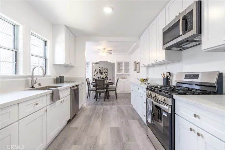 Incredible curb appeal. Discover the charm of this delightful Lynwood residence, where classic features meet modern upgrades. You will enjoy an open floor with abundant natural light. The kitchen is totally redone with new cabinets, new sink, new appliances, and new quartz counter top. Other upgrades include new paint outside and inside, new carpet, new ceiling fans in the bedrooms, new outlets, new hardware, new drains, new laundry hook-up for the washer dryer, new glazing of the bathroom, new toilets, and much more. The backyard is spacious for family gatherings, and the front porch is great for relaxing and viewing the quiet neighborhood. The lot is perfect for adding an ADU in the back. Located in the heart of Lynwood, this property offers easy access to local amenities. Enjoy a leisurely stroll or family picnic at nearby Lynwood City Park, a local favorite for its green spaces and community events. In fact, within about a 2-mile radius you will find about a half a dozen parks to enjoy outdoor recreation. Conveniently situated, this home is just a short drive to the 105 freeway, providing seamless connectivity to greater Los Angeles. Furthermore, residents can enjoy local attractions such as the Plaza Mexico, which is about 6 blocks away, offering plenty of shopping and dining options.