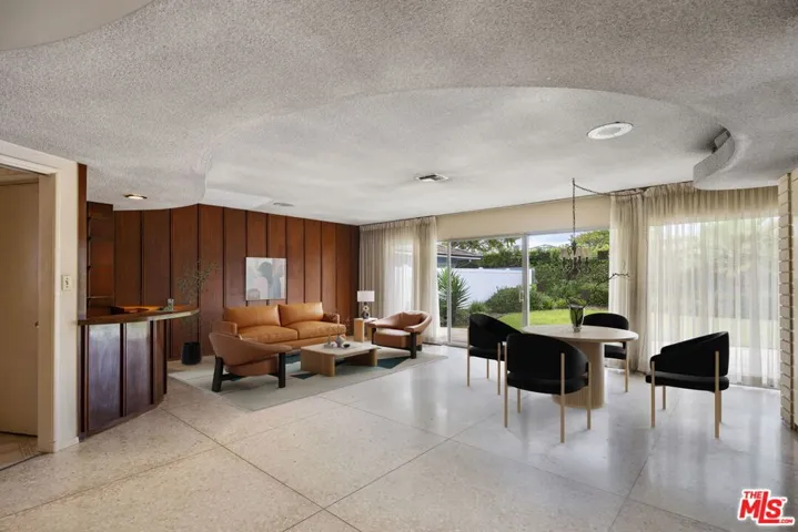 Welcome to 6619 Bedford Avenue, a classic mid-century residence lovingly preserved and offering an authentic canvas untouched by trend-driven updates. From the dramatic entry to the original terrazzo flooring, wood-paneled accent wall, wet bar, graceful curved walls, and vintage ceiling soffits, this home beautifully reflects the true spirit of its era. This sprawling single-story layout spans a generous 3,057 square feet and includes a welcoming living room with a stone fireplace and a striking curved brick wall that leads seamlessly into the family room complete with a wood-paneled wet bar, brick fireplace, and more terrazzo flooring. Along the entire rear of the home, glass doors open onto a large, lush, flat yard, creating an effortless indoor-outdoor flow. The formal dining room features a curved wall of glass overlooking the atrium-inspired front garden, while the kitchen retains its classic wood cabinetry and a well-defined breakfast area. Four spacious bedrooms and three elegantly preserved bathrooms maintain their original mid-century character. Set on a 9,005-square-foot lot, the property offers ample room for outdoor enjoyment and future possibilities.For buyers who appreciate timeless architecture and prefer genuine mid-century details over rushed renovations this is a rare opportunity. Step inside and experience the warmth, charm, and potential of this remarkable home.Located in highly sought-after Ladera Heights, the property offers a quiet neighborhood setting with convenient proximity to Culver City, Playa Vista, Marina del Rey, LAX, LMU, and more.