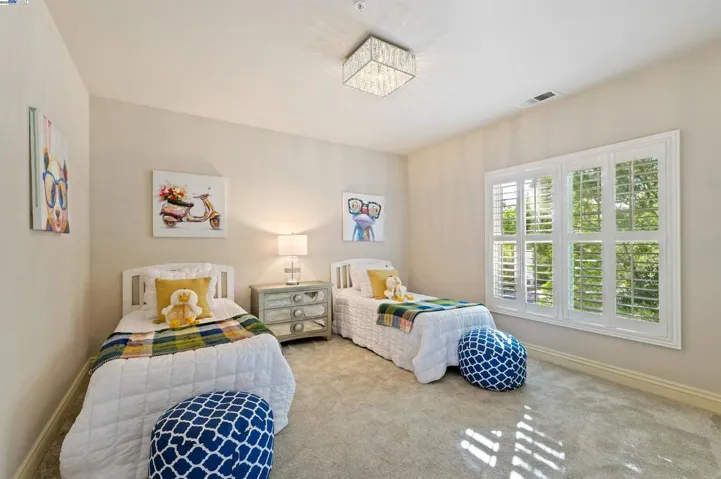 Elegant Italian Villa on a quiet court in gated community of Ruby Hill, sitting on a half-acre lot with a 3-car garage. The dramatic Grand Foyer is flanked by a cherry wood-paneled executive office and formal dining room, with a discreet staircase to the upper level. The formal living room features a fireplace, built-ins, and large picture windows overlooking the backyard. The kitchen includes a large island with vegetable sink and bar seating, Jenn-Air double ovens, gas range, stainless appliances, walk-in and butler’s pantries, plus a built-in desk. The breakfast nook is bright with two walls of windows. The family room showcases exposed wood beams, a raised-hearth fireplace, and sliding glass doors to the backyard. Main-floor bedroom with walk-in closet and nearby full bath with backyard access. Upstairs, the primary suite offers a fireplace, two entries to an exceptional walk-in closet, and an en suite bath with jetted tub, shower with seating, and dual vanities. Two additional bedrooms share a full bath. The backyard has a large patio with pergola, built-in BBQ, and a spacious lawn for a pool or ADU. Enjoy Ruby Hill amenities, top schools, and easy access to major routes, downtown Pleasanton, wineries & Silicon Valley.