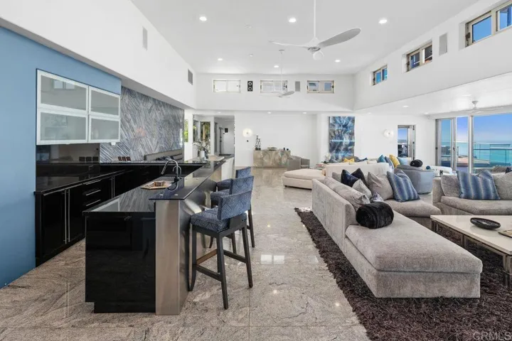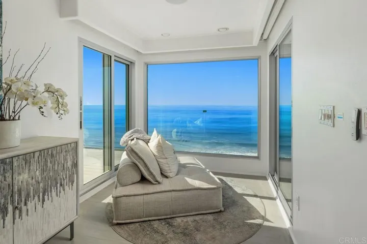 Experience coastal elegance at its finest with this rare 100-foot oceanfront estate in the heart of Encinitas. Perfectly positioned on a private bluff with unobstructed views from La Jolla to San Clemente, this property offers unmatched privacy thanks to empty lots on both sides. Step through a gated entry into a world of sophistication, where a dramatic fire and waterfall feature sets the tone for this architectural masterpiece. The home boasts 2,400 sq. ft. of brand-new ocean-view decking, creating multiple entertaining spaces to soak in panoramic sunsets and city lights. Inside, discover a massive living area with floor-to-ceiling ocean views, a cozy fireplace, and a complete bar for entertaining. The gourmet kitchen, featuring its own fireplace, flows seamlessly to an outdoor BBQ area—ideal for hosting gatherings. Unwind in the saltwater pool and grotto, or enjoy the tranquil koi pond and tropical landscaping. The primary suite offers breathtaking ocean views and a spa-like ensuite, while additional bedrooms include designer bathrooms and private sitting areas. An attached ADU with full kitchen, bath, and laundry provides flexibility for guests or extended family.