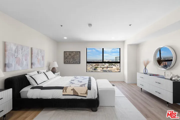 Breathtaking view of almost entire Los Angeles area including Santa Monica, Culver City and West Hollywood! One of the most luxurious and desirable high-rise condominium “The Richmore Garden” in Mid-Wilshire / Koreatown area. The Richmore Garden is located in the prime location as it is only a block away from Wilshire Blvd. and Normandie Ave., close to all kinds of transportation, entertainments, banks, restaurants, markets, hotels and more. Unit 802 offers spacious Masterbedroom with a huge walk in closet and very bright view, another good size second bedroom with plenty of closet spaces. Newly upgraded bathrooms come with both shower booth and tubs, brand new toilets, cabinets and lighting fixtures. The unit also boasts classic hardwood styled vinyl water proof flooring, huge size quartz island top, trendy open and modern kitchen style, and also fully equipped stainless appliances. You will be under a safe protection with a security guard on-site.