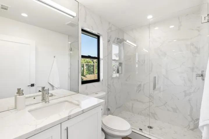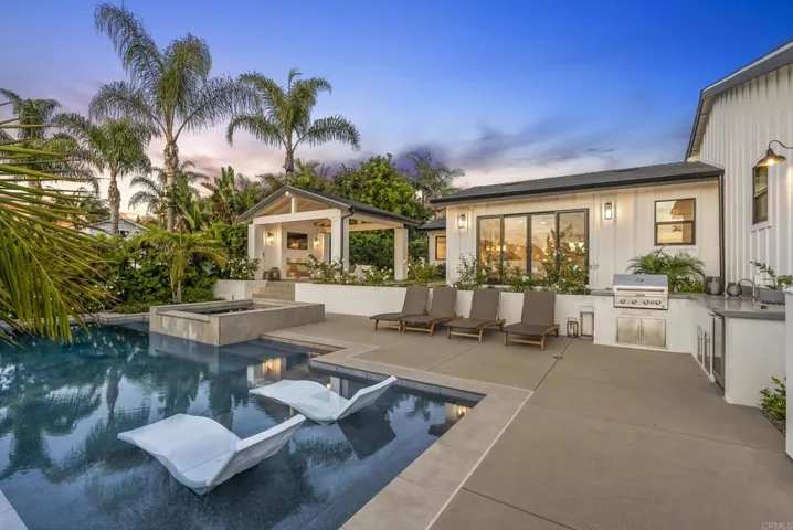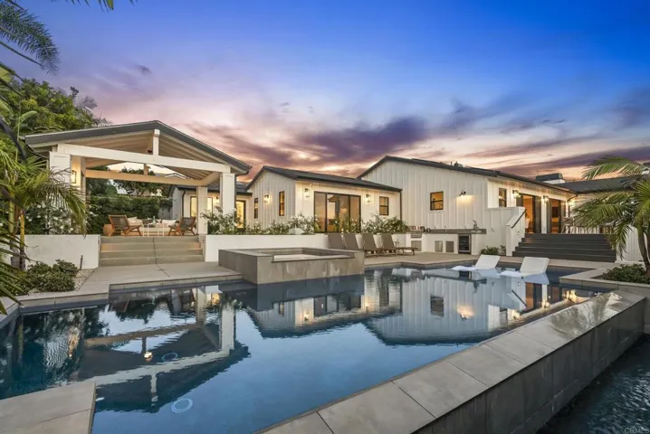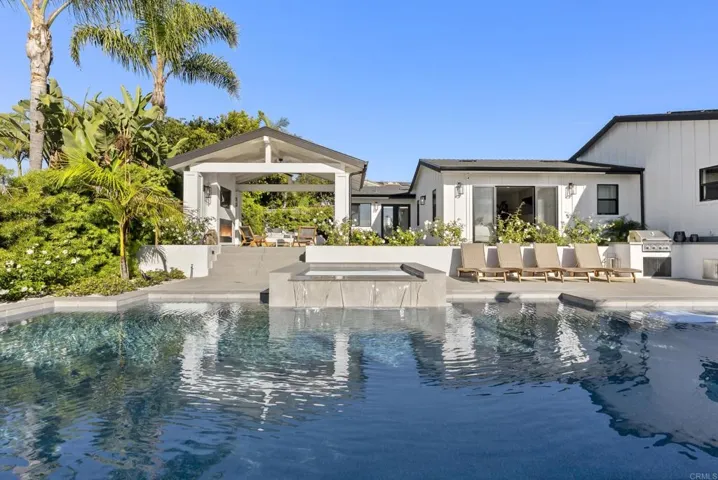 A modern coastal estate in the heart of Carlsbad. This newly built 5-bed, 5-bath residence sits on an expansive lot with a long driveway, a 3-car garage, and incredible indoor–outdoor flow. Every bedroom features its own full en-suite bath and generous space. Designed for elevated living and seamless entertainment, the home features an open kitchen, spacious living room, designer lighting, high-end finishes, and floor-to-ceiling windows framing panoramic views. Multiple outdoor spaces include a resort-style pool, spa, waterfalls, outdoor fireplaces, and view decks—all perfect for gatherings day or night. The property also includes a private ADU, ideal for guests, multigenerational living, or rental income.Located minutes from Carlsbad Village, sandy beaches, top dining, boutique shops, and the best of the coastal lifestyle, this home delivers the true Carlsbad experience.