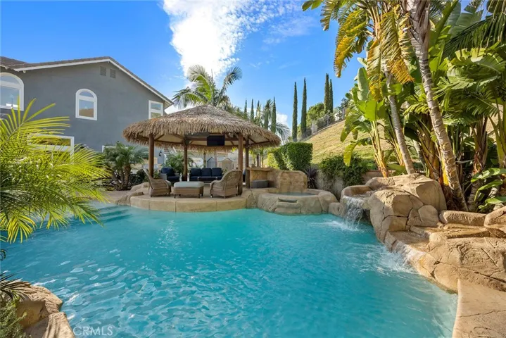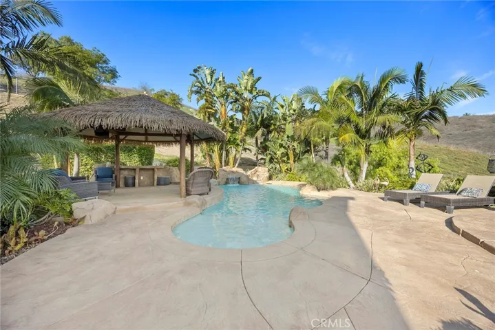 As you step outside to your own private resort oasis featuring a Pebble Tec saltwater pool with natural rock accents and a tranquil waterfall feature. Whether lounging poolside, hosting family and friends, or playing a game of basketball, this outdoor space is made for enjoyment and comfort.