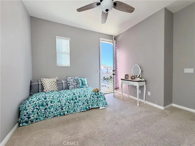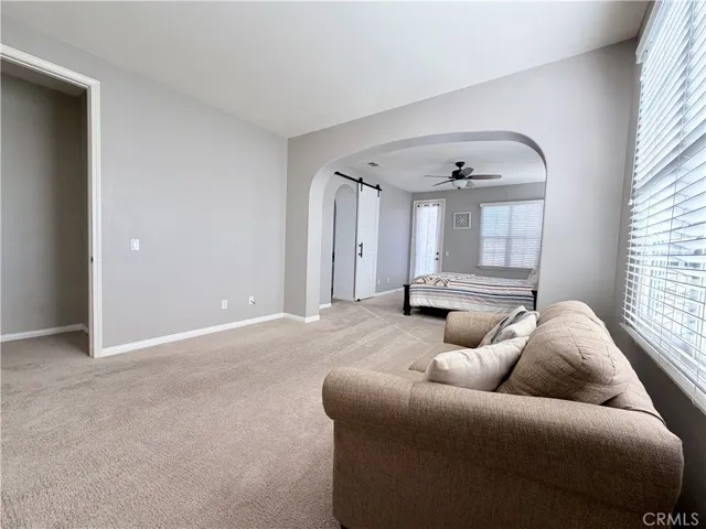 Above, the home opens further. A large loft forms the heart of the upper level, joined by an upstairs laundry room with utility sink and generous storage. Three Juliet balconies invite light and air inward, softening the transition between interior and sky. The primary bedroom suite is expansive, featuring an adjoining area ideal for a sitting or relaxation space, creating a private and composed retreat.
