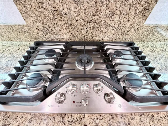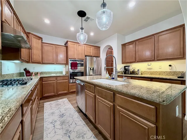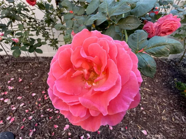 Beyond, the backyard unfolds in abundance, planted with lemon and orange trees, white and yellow peaches, and two varieties of grapevine, all rooted and thriving beneath open sky. A deep, covered patio shelters the full outdoor living area, while a private side yard with gazebo—accessed from the breakfast nook—offers a quiet retreat set apart.