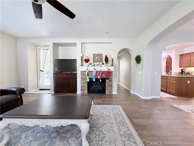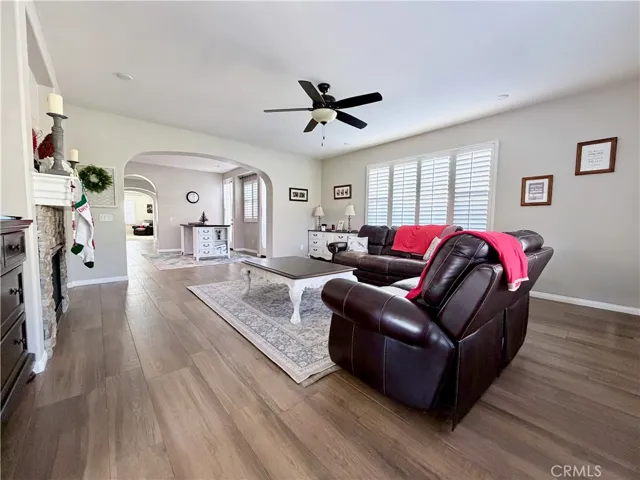 At the center, the kitchen opens around its island, where preparation and pause exist in equal measure. Nearby, the family room is anchored by a gas-and-wood fireplace, a steady hearth lending warmth and presence throughout the seasons.