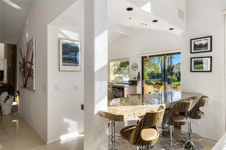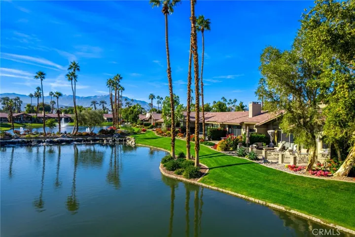 But the true showstopper is the expanded, south-facing patio. Positioned along a serene lake and waterfall with dramatic Santa Rosa Mountain views, this outdoor oasis offers unforgettable sunsets and endless opportunities for relaxation or al fresco dining. A built-in grill adds to the convenience, making this space as practical as it is breathtaking.