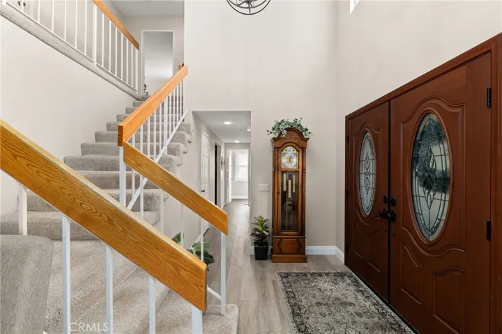Welcome to Southern California living at its finest! This beautifully upgraded 4-bedroom, 3-bath (2 full up, powder down) pool home offers 2,214 sq. ft. of inviting living space designed for relaxing and entertaining. Double doors open to a dramatic two-story foyer leading to a large formal living and dining room filled with natural light.