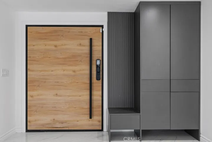 Inside, the home features all-new aluminum-profile double-paned windows, three aluminum bifold doors, and fully upgraded insulation and drywall, creating bright, energy-efficient interiors. The European-style chef’s kitchen, inspired by modern Italian design, serves as the showpiece of the home—highlighted by a massive natural quartzite island, lacquer-finish plywood cabinetry, LED-lit tempered-glass shelving, matching quartzite backsplash, a full ZLINE premium appliance suite, and a walk-in pantry. This space truly brings hotel-level luxury into everyday living.