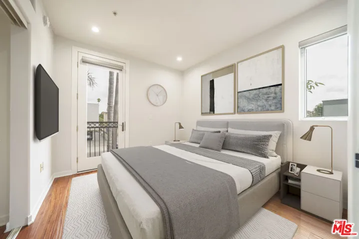Beautifully maintained 2007-built South-East corner unit offering a bright, spacious layout with 3 bedrooms, 2 full bathrooms, and 9 ft ceilings. The open-concept living area features mahogany wood floors, crown molding, and a dining space that flows into the updated kitchen with customized wood cabinetry, granite countertops, stainless steel appliances, and a convenient breakfast bar. The generous primary suite includes a large walk-in closet, additional sliding closet, and an ensuite bath with dual vanities. In-unit laundry is located in the hallway. Additional highlights include newer recessed lighting, updated doors, central HVAC, and excellent storage including a large private Storage unit in the garage. The building provides a recreation room, guest parking, controlled access, and tranquil courtyard spaces. Two assigned tandem parking spaces in a secure gated garage with EV charging station. Low HOA dues including EQ insurance. Prime Korea-town location near cafes, restaurants, markets, and easy access to the 10 freeway.