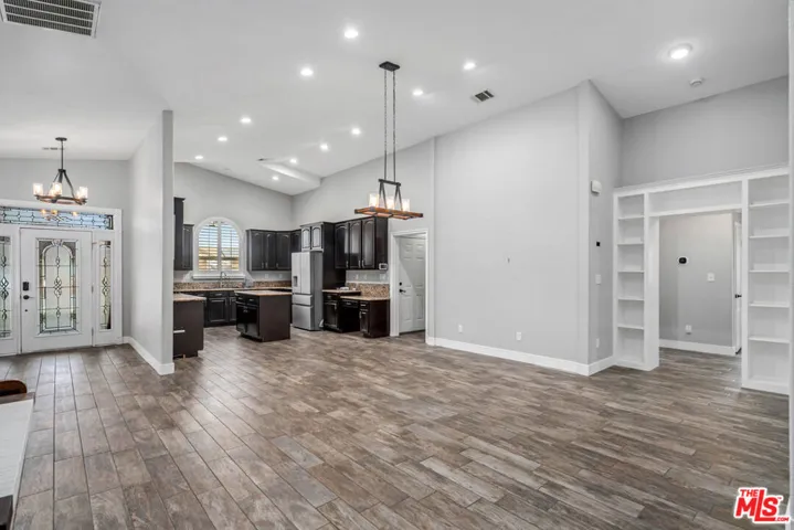 This prestigious 2,519 sq. ft. luxury custom home in Monte Vista Estates offers exceptional craftsmanship on a 0.36-acre lot, complete with a 1,056 sq. ft. detached RV garage (22′ x 48′) featuring a 14′ x 12′ oversized door. A grand custom-designed entrance leads to an elegant open floor plan with elevated ceilings, where a gourmet kitchen with custom cabinetry, granite counters, a large island, black stainless steel appliances, and a walk-in pantry seamlessly connects to the dining area, spacious family room, and inviting living room. The split floor plan features four oversized bedrooms and three baths, including a serene master suite with a tiled surround jacuzzi tub, walk-in tile shower, quartz countertops, and a generous walk-in closet. Interior highlights include plantation shutters, tile flooring, ceiling fans in all bedrooms, a large laundry room, and a hallway adorned with wall-to-wall built-in bookshelves, along with an attached three-car garage featuring insulated doors and epoxy floors. The expansive backyard is an entertainer’s dream with a large covered 40′ x 15′ patio or gazebo space, lush lawn, oversized built-in BBQ, open firepit, jacuzzi, extensive concrete work, iron gates, and a privacy-enhancing block wall.