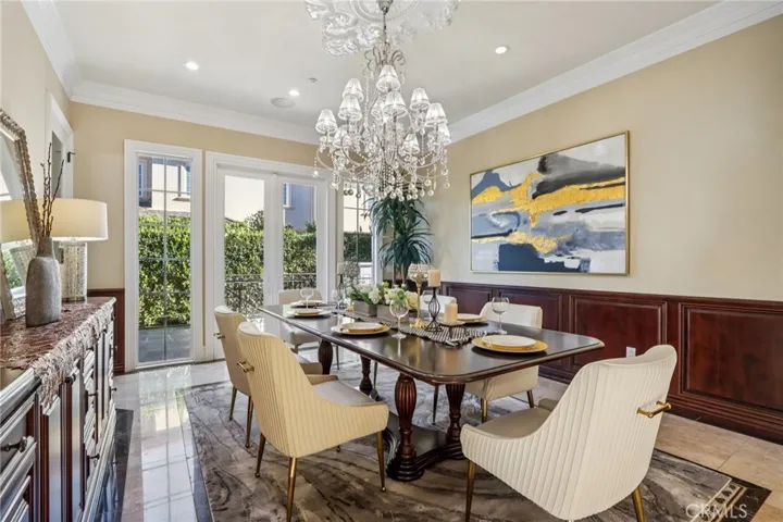 Completely rebuilt in 2008, this elegant Georgian Colonial–inspired home offers timeless style and modern luxury. The grand foyer features a magnificent chandelier, stenciled dome, and soaring 20+ ft ceilings. A formal library with custom cabinetry and fireplace sits to the right, while a beautiful living room and formal dining room—framed by French doors—provide perfect spaces for entertaining.