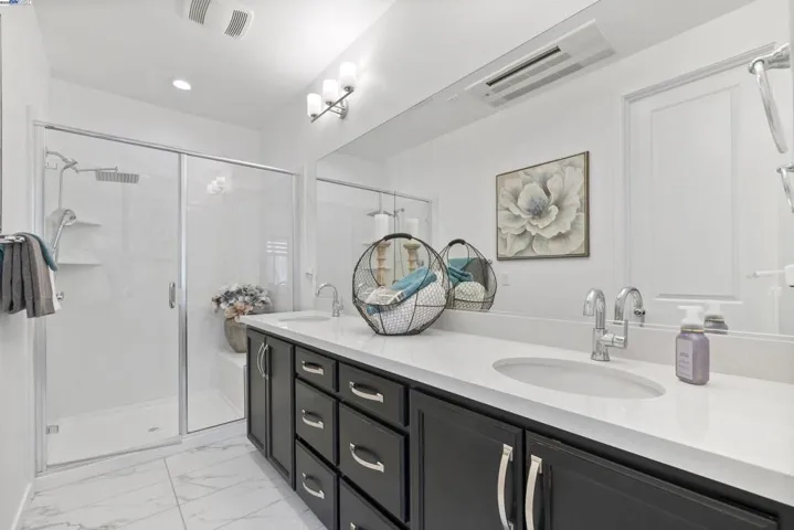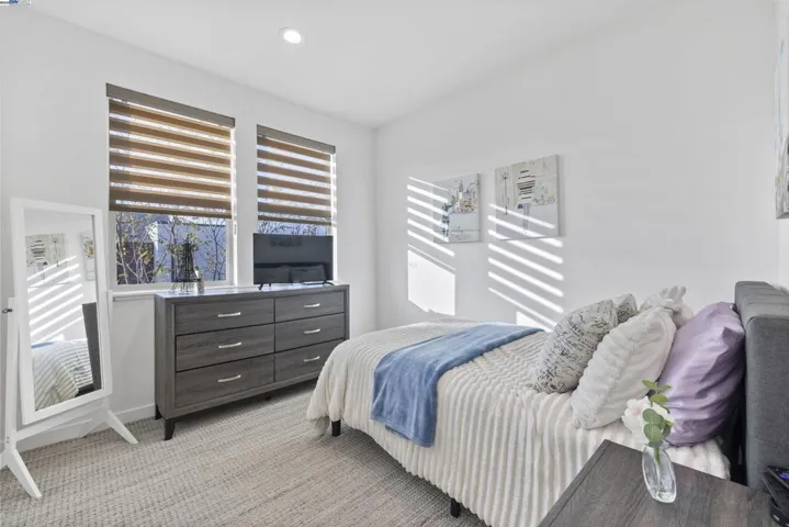 Corner end unit • Boulevard Rec Center with resort-style pool • Near BART, Don Biddle Community Park and future Shamrock Hills TK-8 2020-built townhome-style condo in the Boulevard community with 3 bedrooms, 2.5 baths and approx. 1,574 sq ft on three levels. Street-level foyer and attached 2-car garage. Open-concept main level combines living and dining areas with a kitchen featuring upgraded quartz counters, large island with breakfast bar, gas range, stainless appliances and a powder room. Upper level offers a primary suite with double-vanity bath and stall shower, two additional bedrooms, full hall bath and laundry closet. Features include remote-controlled window coverings in the main living area, laminate and tile flooring and a tankless water heater. Boulevard amenities include The Rec Center with lap and lounge pools, spa, fitness rooms, game room, clubhouse, lounges, playgrounds and pocket parks, plus Don Biddle Community Park and Iron Horse Regional Trail. Close to Persimmon Place (Whole Foods and shops), Dublin retail and dining, Dublin/Pleasanton BART and I-580/680. In Dublin Unified School District; Shamrock Hills TK-8 on Horizon Pkwy is under construction and projected to open Fall 2026 (buyer to verify). 3D and video tours plus floor plan available. MapQuest +4 Zil