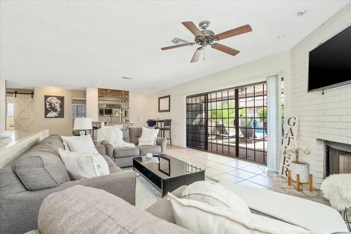 Welcome to your desert retreat in the gated golf community of Indian Palms, Indio. This 3-bedroom, 2-bathroom single-level home spans 2,111 sq. ft. and offers an inviting blend of comfort and functionality. Thoughtfully maintained, it features a brand-new water heater, pool heater, and a fully owned solar system–bringing efficiency and peace of mind.Inside, the open floor plan flows seamlessly from the kitchen and dining area into a step-down living room, highlighted by a white brick fireplace, wet bar, and expansive windows that bathe the space in natural light. The kitchen is well-equipped with stainless steel appliances, ample counter space, and a cozy breakfast bar with built-in storage. The primary suite includes direct patio access, a large mirrored closet, and an en-suite bathroom with dual sinks, a makeup station, jetted tub, and separate shower. Two additional bedrooms offer flexibility for guests, an office, or creative space.Step outside to a private backyard oasis designed for both relaxation and entertaining. A covered patio overlooks the sparkling pebble-tec pool, while mature landscaping creates a serene atmosphere. A grassy lawn tucked behind lush foliage adds extra space for pets or play.Located on a quiet street, this home offers access to community amenities including hiking trails, pools, and, of course, golf. With the Empire Polo Grounds just minutes away, plus nearby casinos, shopping, and dining, the lifestyle opportunities are unmatched. Whether you’re seeking a primary residence, seasonal escape, or investment property, this home delivers on every level.ATTN Investors, FHA Assumable @ 4%
