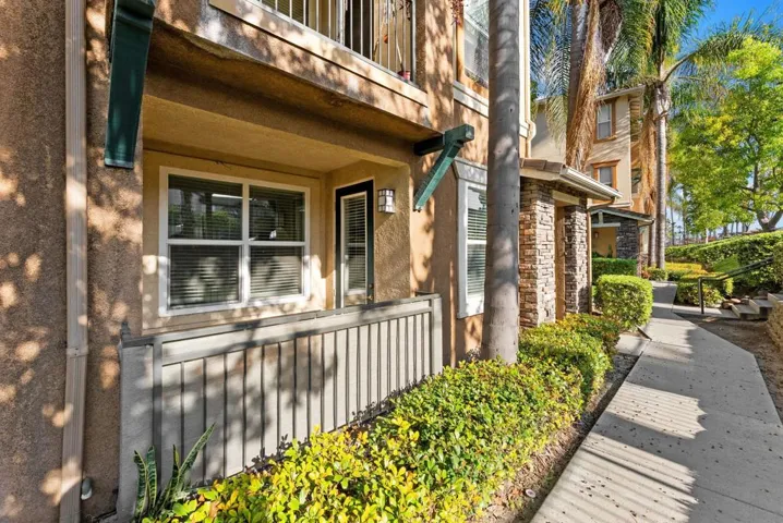Welcome to this well situated single story condo in the heart of Otay Ranch. Just steps from the East Palomar business district with shops, restaurants, and daily conveniences, the location of this home is truly unbeatable. Inside, the layout is thoughtfully designed with two generously sized bedrooms, each featuring walk in closets, and two full bathrooms. The home includes a full size in unit laundry closet and direct access to your private garage through a shared hallway. Recently refreshed with new paint and carpet, this desirable corner unit shares only one wall and enjoys abundant natural light thanks to its southern exposure. A private patio offers a peaceful outdoor space, while the community provides the full resort style experience including multiple pools, a fitness center, basketball courts, parks, and scenic trails. It is everything that makes Otay Ranch one of Chula Vista’s most sought after neighborhoods. Whether you are a first time buyer, downsizing, or investing, this home delivers comfort, convenience, and easy living.