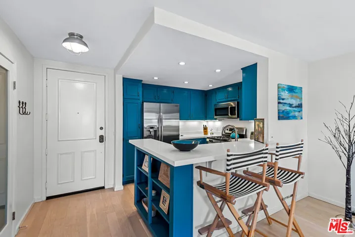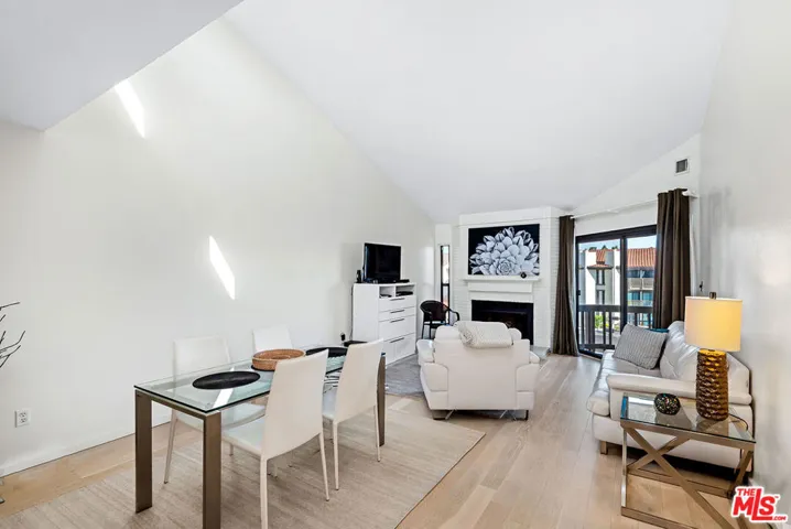 Highly desirable, sun-drenched 1-bedroom, 1.5-bathroom penthouse in the popular Villas del Rey, overlooking the tennis courts and pool. This spacious and extensively renovated unit features vaulted ceilings with skylights, white oak floors throughout, a fireplace, a private balcony, and an updated chef’s kitchen with quartz countertops, stainless steel appliances, and a breakfast bar. Additional highlights include central air and heat, in-unit laundry, two-car tandem parking, and a secured room with a fenced storage area of approximately 40 square feet.Villas del Rey residents enjoy resort-style amenities including a sparkling pool, two spas, two saunas, tennis courts, a fitness center, ample guest parking, evening security, and a clubhouse with a full kitchen for events all just a half mile from the beach!
