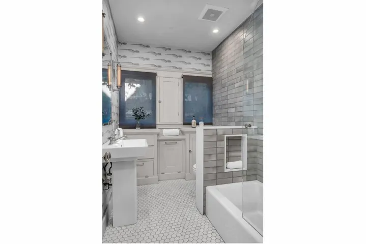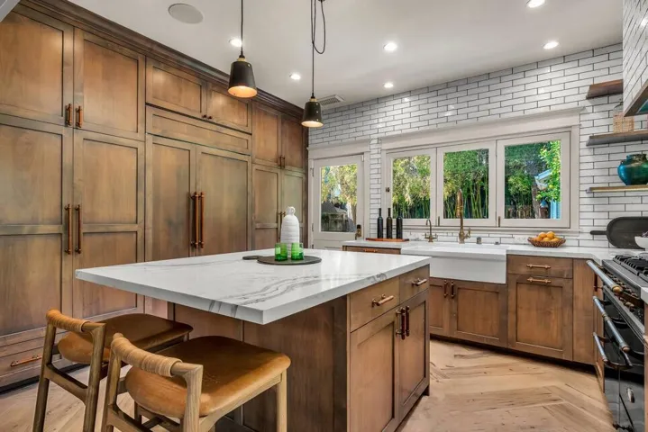 Ideally located mid-block on a tree-lined street in the coveted Spaulding Square HPOZ, stands this private and picturesque, designer-done craftsman residence with too many upgrades and finishes to list. While maintaining the original integrity and authenticity of architecture and design, the property underwent an extensive remodel and boasts new bathrooms, kitchen, floors, plumbing, air conditioning, and electrical. The open concept great room is appointed with a living room with gas fireplace, dedicated dining area and gourmet chef designed kitchen with a dramatic marble island, Lacanche range and Sub Zero appliances which include a wine fridge and ice maker. Lefroy Brooks designer finishes throughout. Through a charming Dutch door is a spacious deck with ample built-in storage and a large flat grassy yard. Amenities include: Alexa-enabled Lutron Caseta lights, Nest thermostats and security system with four cameras, built-in Sonos sound system inside and out and electric vehicle charging.