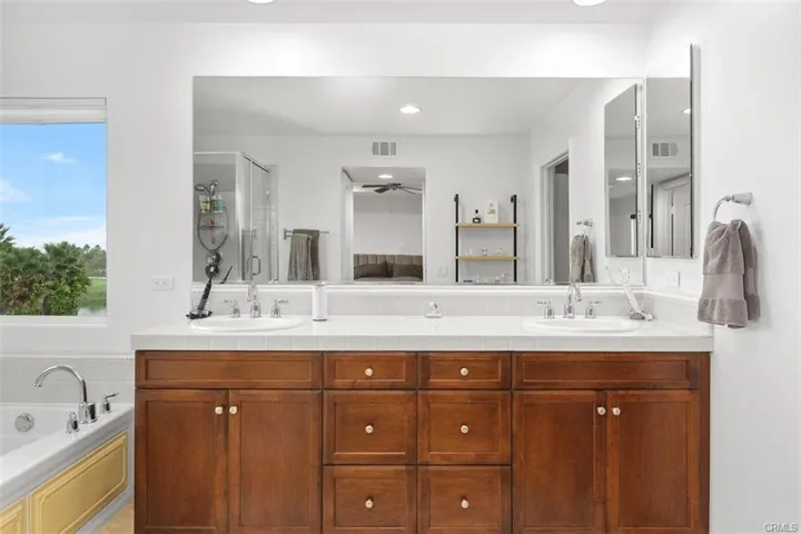 Designed for energy-efficient comfort, the home features dual A/C and heating systems for upstairs and downstairs, ceiling fans in every room, a QuietCool whole-house fan, and recessed LED lighting throughout. Smart-home upgrades include a doorbell, security cameras, smart switches, and thermostat.