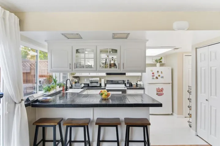 Spectacular 2-story Santa Teresa townhome located in a peaceful, tree-lined community. This well-maintained home features custom interior paint, gleaming laminate flooring, an open and spacious layout with a formal living room, large dining area, and breakfast bar. Updated kitchen with reglazed countertops, sink, and tile flooring. Remodeled baths include granite vanities and newer light/water fixtures. The large primary bedroom offers two closets, including a walk-in. Additional storage throughout, inside laundry with washer/dryer included, central forced heating, and custom plantation shutters. Enjoy your private patio with Trex deck and direct access to a detached 2-car garage. Beautifully landscaped grounds with mature trees and greenbelt pathways. HOA dues cover exterior maintenance, landscaping, and community pool. Minutes to Santa Teresa Golf Club, Santa Teresa County Park, Village Oaks shopping, Costco, and highly rated schools. Dont miss this one!