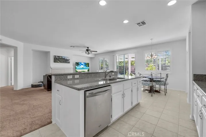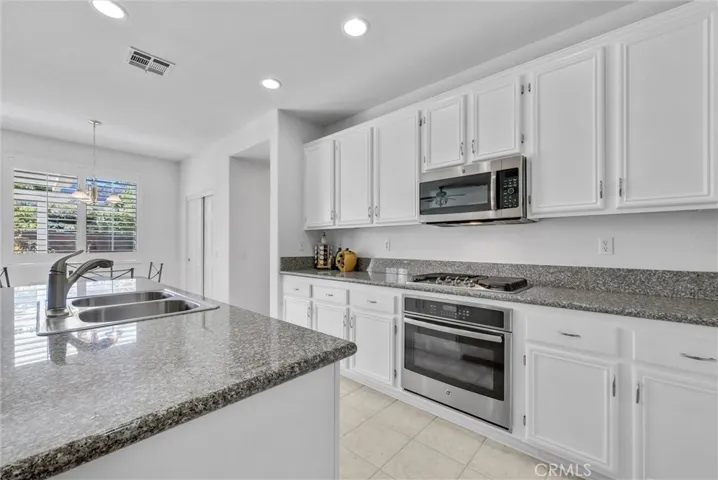 The thoughtfully designed floorplan places the primary suite on its own wing for maximum privacy. The generously sized primary bath offers dual sinks, a separate spa tub and shower, and a large walk-in closet. Outdoors, the beautifully maintained rear yard showcases a patio lined with rose bushes and palm trees, while the level side yard is dotted with fruit trees—an ideal canvas for your personal outdoor vision. The front yard features an impressive lawn area elevated from the street, enhancing curb appeal.Located just minutes from Eagle Glen Golf Club, the 15 and 91 freeways, and the premier shopping and entertainment of Dos Lagos and The Crossings, this exceptional single-story home is not to be missed.