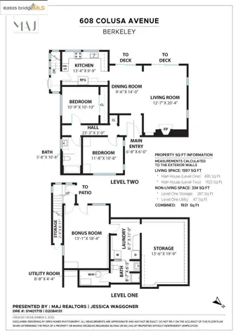 Updated inside-and-out, on a huge lot, with San Francisco city views and a delightful garden! This beautiful north Berkeley Spanish Mediterranean bungalow leaves little to be desired. Upon entrance, the main level has not a stair in sight and features tasteful updates throughout. Meticulously maintained and boasting a new roof and updated electrical (2025). An ideal layout features two bedrooms and a beautifully renovated bathroom, a charming kitchen with sunset views, a dining area and living room that opens onto a sunny backyard deck on the main level. Downstairs is an additional family room with backyard garden access, laundry room, and sweet full bathroom. The yard at 608 Colusa is a rare find…the yard is beautifully curated and the perfect space for entertaining, enjoying bay views and the flutter of monarch butterflies, and realizing your inner gardener. An additional room downstairs can be used as a workshop or additional storage space. Access the home via Colusa Avenue or with a dedicated driveway off Peralta Avenue. The location straddles two of the most highly-desired East Bay neighborhoods – charming Kensington and the beauty of North Berkeley. Easy access through tree-lined streets to local coffee, highly-rated public schools, and beautiful parks.