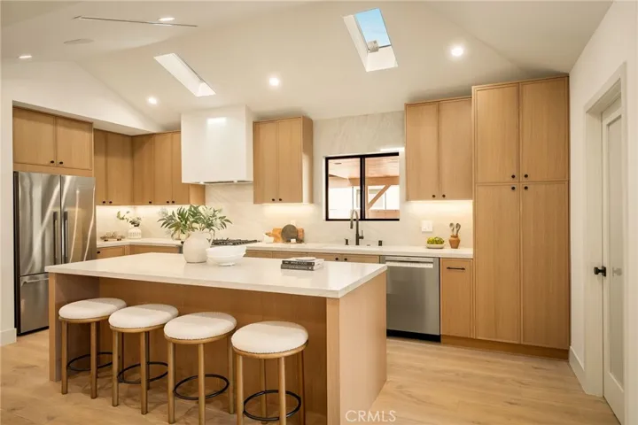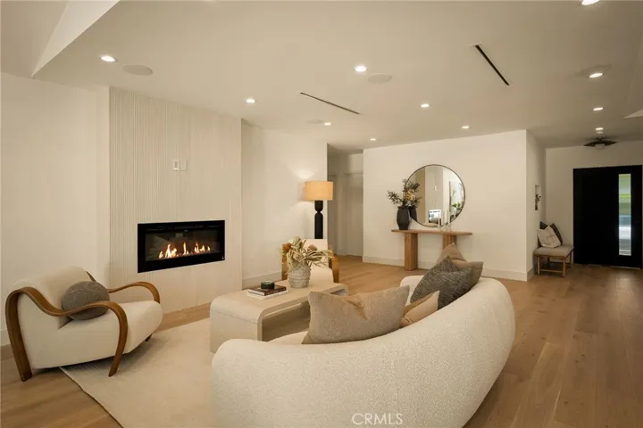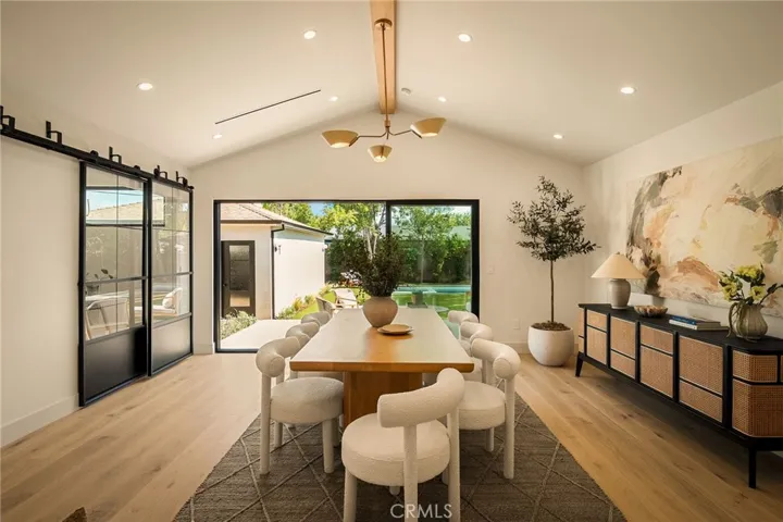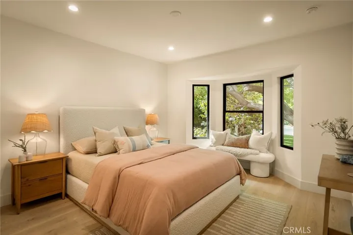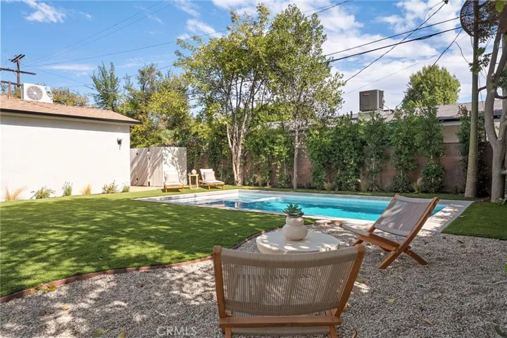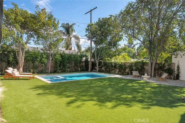 This beautifully reimagined home sits gracefully on a quiet street in one of Valley Village’s most desirable neighborhoods. Thoughtfully redesigned from top to bottom, the 3-bedroom, 2.5-bath residence showcases sophisticated design, natural light, and seamless flow throughout its open-concept layout. The inviting living room, anchored by a cozy fireplace, connects effortlessly to the dining area and a chef’s kitchen featuring a large island, custom White Oak cabinetry, Taj Mahal quartzite countertops, and premium appliances — the perfect setup for gatherings and everyday living. Sliding doors open to a spacious entertainer’s backyard featuring a brand-new pool and spa, surrounded by lush greenery and ambient landscape lighting that create a private, resort-like retreat. The primary suite offers direct access to the backyard and a spa-inspired bath with a freestanding soaking tub. Each bedroom is spacious and filled with natural light, offering comfort and versatility for family, guests, or creative use. The home also features a dedicated laundry room with ample storage, carport parking, and a detached 1-bedroom ADU showcasing high ceilings and abundant natural light.. The property’s extended driveway provides generous parking for several vehicles, including space for an RV. Set on an expansive 8,100 sq. ft. lot, this 2,600 sq. ft. property blends modern luxury with timeless warmth, offering exceptional design and functionality in one of Valley Village’s most desirable neighborhoods — just moments from a House of Worship.
