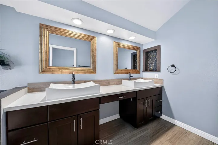 Welcome home to this fully remodeled home in “The Highlands” with 2216 sq ft of living space. This 4 bedroom home has an attached 3 car garage and wide driveway for additional parking for 3 cars. The downstairs level has 1 bedroom with french doors and a full bathroom. This home comes equipped with a smart a/c, a fully updated kitchen, stainless steel appliances including refrigerator with granite countertops and wood floors. The kitchen opens up to the family room with a gas fireplace. There is a separate laundry room inside the home with washer and dryer hookup. You can entertain in the formal dining area which opens up to the living room area. Upstairs you will find 2 bedrooms with a fully remodeled Jack and Jill bathroom with dual sinks. The primary bedroom has a large, fully redone bathroom with a separate tub, shower, dual sinks, and a large walk in closet. The low maintenance backyard is perfect for entertaining and has views of the city and hills. Move-in condition.