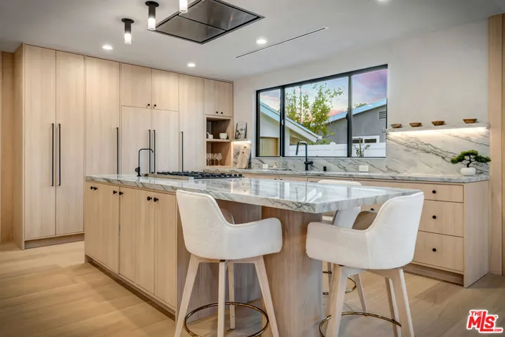 Rebuilt and reimagined from the studs, this stunning 4-bedroom, 3.5-bath residence exemplifies modern sophistication, superior craftsmanship, and timeless design. Every detail has been thoughtfully curated to create a seamless blend of luxury and functionality. The open-concept floor plan is filled with natural light and highlighted by smooth plaster walls and vaulted ceilings.The spacious living room features a striking wood paneled feature wall and custom fireplace that adds depth and sophistication. Perfect for both everyday living and entertaining, the seamless flow connects the living, dining, and kitchen areas effortlessly. The gourmet kitchen is a true centerpiece, featuring high-end appliances, designer fixtures, and a large center island. Sliding glass doors lead to a beautifully landscaped backyard retreat, complete with sparking pool, custom-built BBQ, firepit, and integrated sound system. Nearly every element of the home has been upgraded, including brand-new electrical, plumbing and HVAC systems and more. Other amenities include two primary bedrooms, a stunning powder room and a dedicated laundry room. Located close to premier shopping, dining, and entertainment this exceptional property offers the perfect combination of luxury, comfort, and convenience a rare opportunity to experience refined Woodland Hills living at its finest.