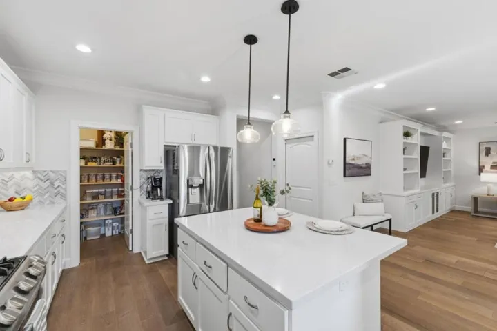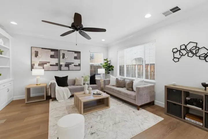 Finally – A Blossom Valley home that’s truly move-in ready. Built in 2012 and thoughtfully updated, this 4-bed, 3-bath, 2,159 sqft home in Westbury checks every box without the renovation stress. Soaring ceilings and engineered hardwood floors set the tone the moment you step inside. The kitchen delivers with quartz countertops, center island, custom cabinetry, walk-in pantry, and newer appliances. Perfect for weeknights or weekend entertaining. The primary suite feels like a retreat with a spa-inspired bath, double sinks, soaking tub, glass-enclosed tile shower, and walk-in closet with room to spare. A first-floor bedroom and full bath add flexibility for guests, multigenerational needs, or a home office. Upstairs: two additional generous bedrooms, a full bath, and laundry with newer washer and dryer. Outside a low-maintenance Trex deck and turf. Low yard work required. The location delivers. Top-rated schools close by. Oakridge Mall in five minutes, Whole Foods in eight. Martial Cottle Park around the corner with trails, picnic areas, a children’s discovery farm, and dog-friendly paths. VTA light rail within walking distance. Easy commute to Apple, Cisco, and downtown San Jose. A newer home in a great pocket of Blossom Valley. Modern, functional, move-in ready. No compromises.