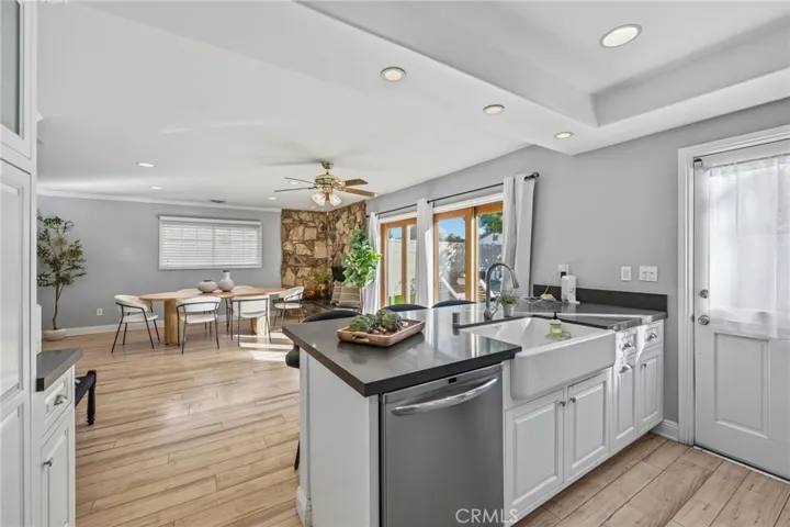 Welcome to this stunning move-in-ready home, perfectly situated on a spacious, flat lot in a quiet, tree-lined neighborhood. Thoughtfully updated throughout, this single-story residence offers modern comfort, timeless charm. Step inside the main home to a bright, open floor plan where a cozy fireplace creates a natural divide between the living and family rooms. The remodeled kitchen is a true centerpiece, featuring quartz countertops, a large island with bar seating, subway tile backsplash, stainless steel appliances, and custom cabinetry all with convenient access to the backyard. French doors open to a peaceful outdoor retreat complete with fruit trees, a lush grassy yard, and a covered patio perfect for relaxing or entertaining. The spacious bedrooms provide plenty of comfort, while the beautifully updated bathrooms boast a floor-to-ceiling tiled shower and a soaking tub with sleek modern finishes. With excellent curb appeal and major upgrades already done, this West Hills treasure combines style, flexibility, and convenience in one perfect package. Don’t miss this rare opportunity to call Hartland home!