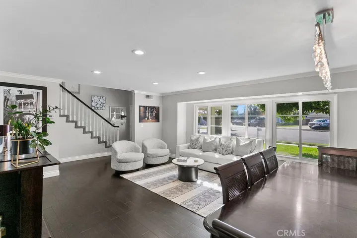 Located on a quiet and tranquil cul-de-sac, this elegantly crafted estate is exploding with upgrades. Situated on an expansive 10,000 square foot lot, and boasting almost 2900 square feet of living space, this masterpiece is the perfect blend of luxury living and outdoor charm. Enter through double glass inlaid front doors into a light bright entry. Dark wood floors and custom base and case give the entry an open and inviting feel. The kitchen is laid out in open concept with the spacious family room for that perfect great room feel. High end SS appliances, double island, glass inlaid uppers, two sinks (prep and main), and scenic picture window of the resort like back yard make this kitchen the benchmark for culinary excellence. The family room is spacious, and rear loaded with multiple access points to the backyard, giving the home a true California indoor outdoor feel. Built in custom cabinetry and stone fireplace surround give the family room a warm and inviting feel while also maintaining an opulent and design conscious feel. The formal living room is sprawling with room for 10 top dining, and plenty of room for full formal sitting set up. A huge picture window bay provides tons of natural light a a perfect view of the quiet cul-de-sac. The primary bedroom is spacious and elegantly finished with dark walls contrasting neatly with crisp base and case. The open primary bath is finished with dual vanities, walk in shower, large soaking tub, seamless glass enclosure, rain head and wand shower, and private water closet. The secondary bedrooms are elegantly appointed with spacious layouts, upgraded base, ceiling fans, floating shelves, and large windows for plenty of natural light. And possibly the crown jewel of the property is the sprawling resort like back yard, complete with covered patio, sparkling pool and spa, built in outdoor kitchen w/ SS pizza oven, BBQ, and giant bar top seating peninsula. The sprawling patio has plenty of space for full outdoor dining AND lounge area for those big game days and nights. Other great features include spacious finished garage, downstairs bedroom w/ bathroom proximity, solar panels, recessed cans, separate indoor laundry room, fully renovated secondary baths, grassy area, fountain water feature, and spacious driveway with extra parking space. Call for additional details!