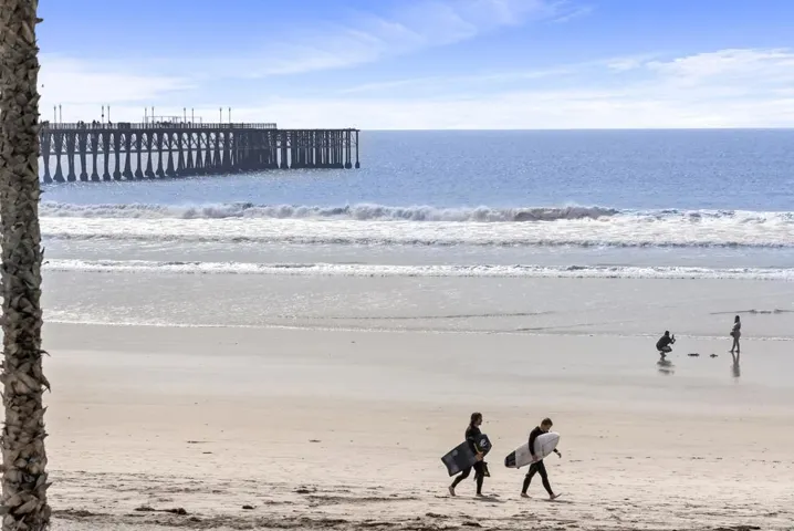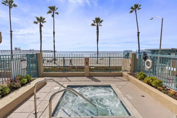 Experience breathtaking front-row coastal living at 400 N The Strand #27—a beachfront gem in the coveted San Miguel III community. This rare ground-level unit offers no-stairs access, making beachside living both luxurious and effortless. Enjoy panoramic white water ocean views and the soothing sound of waves from the comfort of home! Inside, the condo features fresh paint and tastefully updated bathrooms, creating a clean and modern coastal vibe. The open-concept living space is filled with natural light and opens directly onto an ocean-view patio—perfect for dining al fresco or soaking in the sunsets over the Pacific. As evening falls, take in the magical sight of the Oceanside Pier glowing against the night sky—an unforgettable view right from your living room or patio. The spacious primary bedroom features a walk-in closet and dual sink vanity. Additional highlights include in-unit laundry, a cozy fireplace, and two assigned underground parking spaces in a gated garage with elevator access. Ideally located just a short stroll from the Oceanside Pier, marina, and vibrant downtown, this home puts you steps away from Oceanside’s best dining, coffee shops, and boutique shopping. San Miguel III is a well-maintained beachfront community featuring two spas, beautifully landscaped grounds, and multiple access points to the sand. Whether you’re looking for a peaceful beachfront escape or an unbeatable location to enjoy all that Oceanside has to offer, this is your chance to own a front-row seat to Southern California’s iconic coastline.