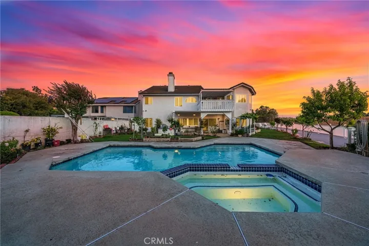 Step outside through the screened patio door to discover a tranquil backyard oasis. A sparkling swimming pool with an attached jacuzzi invites relaxation, surrounded by blooming rose bushes, flowering plants, and fruitful trees. A spacious deck runs the length of the home, offering breathtaking views of the natural grasslands and wild bushes below—an ideal setting to unwind in the gentle breeze, whether reclining on patio furniture or simply enjoying the serene outdoor beauty.