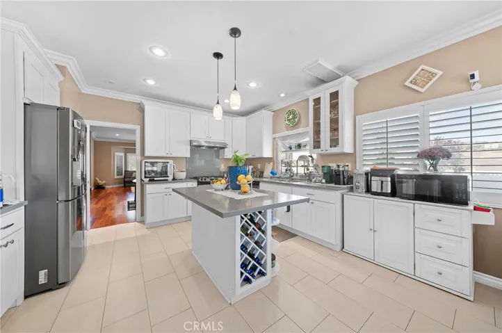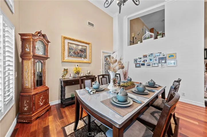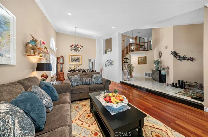 Set in a peaceful cul-de-sac in the desirable Diamond Bar neighborhood, the home sits on an expansive lot that offers privacy and space. Inside, you’ll find a graceful curved staircase with soft carpeting and a stunning metal leaf light fixture overhead. A dedicated laundry room and numerous closets and cabinets add convenience and generous storage options.