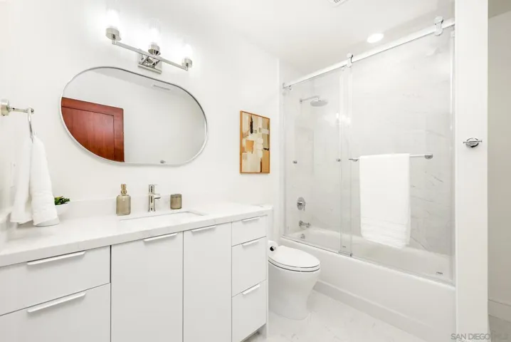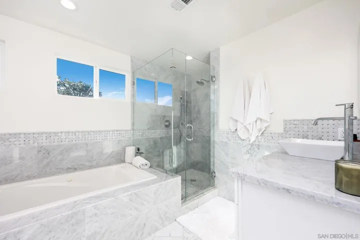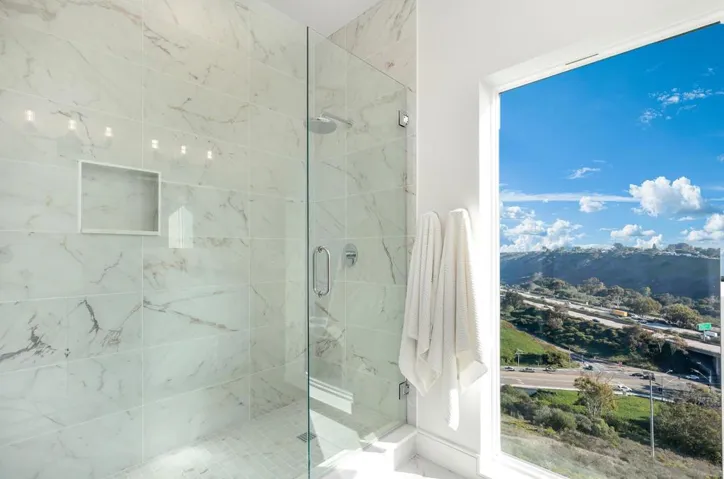 A dramatic re-imagining of California coastal living — this sleek, modern estate perched in North La Jolla delivers sweeping eastern and city-skyline views from multiple vantage points. Vaulted ceilings and skylights flood the interior with natural light, while large windows frame horizon views that shift from sunrise warmth to shimmering nighttime cityscapes. Three expansive view decks, along with generously proportioned living areas anchored by a dramatic, elongated fireplace, create a home that balances grandeur with comfort. The chef’s kitchen opens seamlessly to the great room with stone countertops and high-end finishes, ideal for both casual family meals and entertaining. Hardwood floors and cathedral ceilings throughout the home create a flowing, elegant atmosphere. With three fireplaces, split-level zones for climate control, two water-heaters, and a 3-car garage — the home was rebuilt with no expense spared. This is more than a home; it’s a rare opportunity to own a fully renovated, view-driven estate that pairs modern luxury with the signature La Jolla lifestyle.