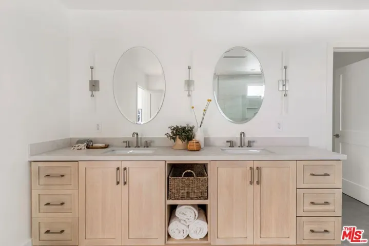 FULLY FURNISHED OR NOT! A rare opportunity to lease a brand new fully remodeled modern interior charmer redone from head to toe, with the finest finishes, situated in the hills of Encino, In a secluded street at the end of a quiet cul de sac. LA living at its finest! This incredible, 4 Bed, 5 bath 3,500 sq ft upscale remodeled, single-story offers architectural elements and designer details with an open concept floor plan which is enhanced by phenomenal indoor/outdoor flow with floor-to-ceiling sliding glass walls. Infused with natural light throughout, a step down living room with a marble accent fireplace, adjacent designated dining room with picturesque view of your own private landscaped hillside, refreshing pool, outdoor circular firepit sitting area and an entertainer’s outdoor patio. A gourmet open spacious kitchen fully equipped with latest top of the line designer appliances and a large island used for a breakfast area or for entertaining. Custom cabinetry, quartz countertops, flush cooktop with a rising sleek hood & ample counter space. The vast master quarters has ample natural light from its glass sliders which showcase the relaxing exterior private grounds featuring the patio area, pool & spa. Ample closet space in the dual walk-in closets, dual vanities in the master bathroom and an oversized marble shower. The secondary bedrooms are all spacious as well with built in custom closets. Truly an entertainer’s paradise, all located in the prestigious sought after Lanai Elementary school neighborhood. Additional amenities include mudroom, Large Laundry room, recessed lighting, wood laminate flooring, Lutron home system, central air & heat, and an epoxy floor garage. Home can be fully furnished or unfurnished.
