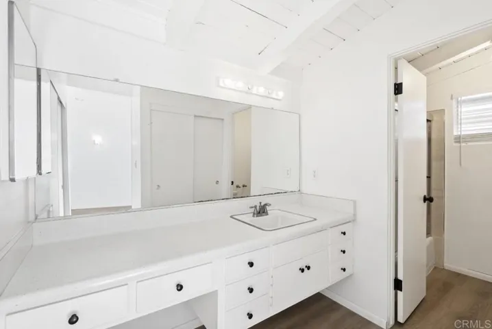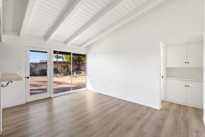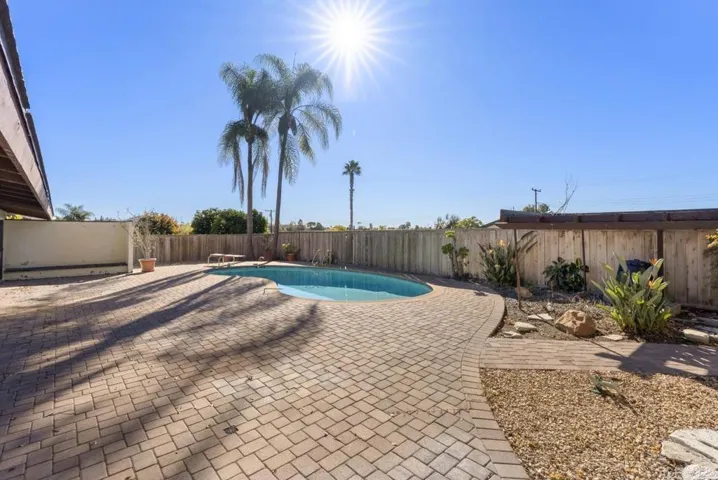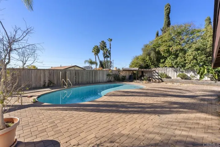 Single-level home in the San Carlos area with pool, RV parking, and mountain views. Vaulted beam ceilings and large windows bring natural light into the living, dining, and family rooms. Functional floor plan with 4 bedrooms, 2 baths, and multiple sliding doors opening to the backyard. Kitchen includes gas cooktop, wall oven, and ample counter space. Private backyard features a pool, expansive paver patio, and space for outdoor seating or garden areas. New interior paint and updated flooring in main living areas. Located approx. 0.3 miles from the Cowles Mountain trailhead and near Lake Murray recreation, local shops, and grocery options. Wide driveway and attached garage provide plentiful parking. A great opportunity to personalize or update in a well-established neighborhood with convenient access to parks, trails, and area amenities.
