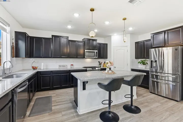 Beautiful Solar-Equipped 4-Bedroom Home with Exceptional Backyard Retreat Welcome to this beautiful and uniquely designed two-story home featuring 4 bedrooms, 3 full bathrooms, and a 2-car garage. As you enter, you’re greeted by a high-ceiling foyer and a stunning view of the custom waterfall feature, setting the tone for the elegance throughout the home. The main level includes a spacious downstairs bedroom and a full bathroom, perfect for guests or multigenerational living. The grand kitchen, stretching over 15 feet, offers abundant counter space, a center island, and a bright window overlooking the serene backyard. Upstairs, the expansive master suite invites relaxation with a large bathroom featuring a dual-sink vanity, separate shower, comfortable soaking tub, and an oversized walk-in closet. One of the standout features of this home is its eccentric, entertainer’s backyard. Multiple seating zones include a massive sunken seating area ideal for hosting gatherings, and a covered patio complete with a TV and fireplace, perfect for enjoying cozy evenings year-round. The vibrant community provides a lifestyle of comfort and fun with two swimming pools, five play areas, a basketball court, a sand pit and miles of walking trails.
