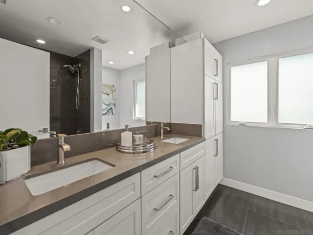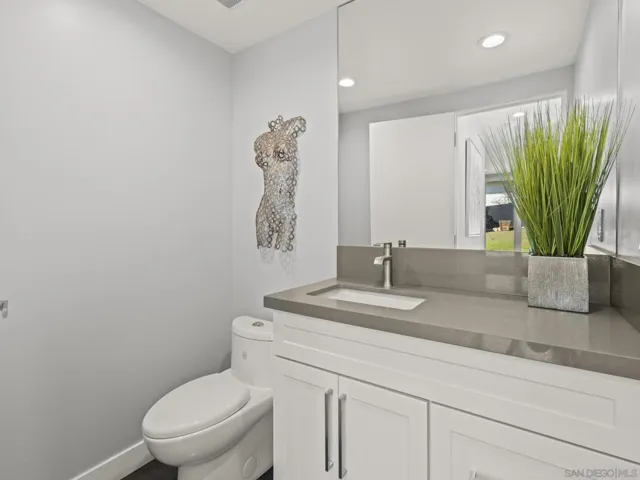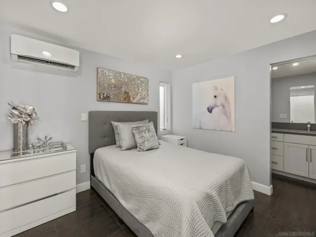 This property is being offered in a value range of $1,280,000-$1,339,000. Tucked into the serene rolling hills of Western Poway, this residence delivers an exceptional escape from the rush of city living. Set within a coveted enclave of classic mid-century homes, it pairs clean, modern lines with a warm, inspiring ambiance. The interior has been thoughtfully reimagined with high-end upgrades throughout, creating a true contemporary showcase. The expansive lot offers a pristine blank canvas, poised for the outdoor retreat of your dreams. Located on one of Western Poway’s most charming storybook cul-de-sacs, this home blends peaceful neighborhood living with exceptional practicality. The conveniences of Poway and its top-tier school district are just minutes away, and the highly desirable western position places you within easy reach of the I-15 and the broader San Diego region. Beyond its serene setting in the rolling hills, this home delivers the rare comfort of knowing so many details have already been thoughtfully reimagined. Between 2019 and 2020, the property underwent an extensive transformation—modernizing the essentials while elevating the overall design. Step inside to find sleek tile flooring throughout, vaulted ceilings in the split level loft living room, and an open, airy kitchen expanded with a custom long-span steel beam. New Milgard Tuscany windows and sliders flood the home with light, complemented by a striking custom pivot entry door that instantly sets the tone. The kitchen features granite counters, stainless appliances, upgraded 3/4″ gas service to the range, and direct access to the outdoors through the oversized slider. Every bathroom has been fully remodeled with granite counters, custom cabinetry, and designer tilework—plus a new tub in the upstairs bath. The entire home was re-insulated and finished with 5/8″ drywall for improved quiet and energy efficiency, paired with new central heat and AC, a 50-gallon water heater, upgraded electrical, and a refreshed roof for peace of mind. A standout bonus is the garage conversion, now a stylish bonus suite with its own full bath and mini-split system—perfect as a guest hideaway, home office, or studio. Even the remaining garage space benefited from the renovation, gaining new tile flooring and an electrical sub-panel. Here the home is perfectly ready to come in and live a beautiful life. What remains is the fun part: shaping the generous lot into the outdoor retreat you’ve always imagined.