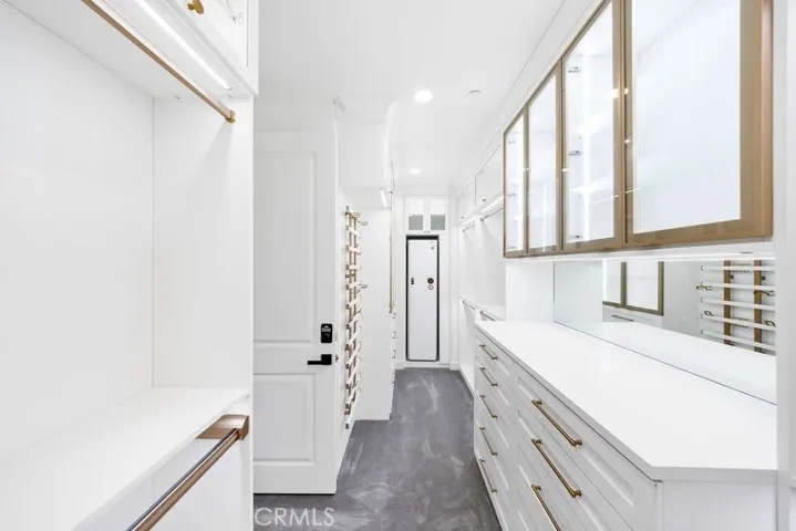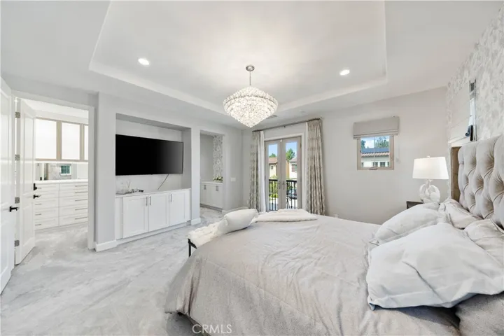 showers. Additional highlights include large porcelain tiles, chandeliers, custom drapery, built-in organizers and closets by California Closet, Tesla chargers,